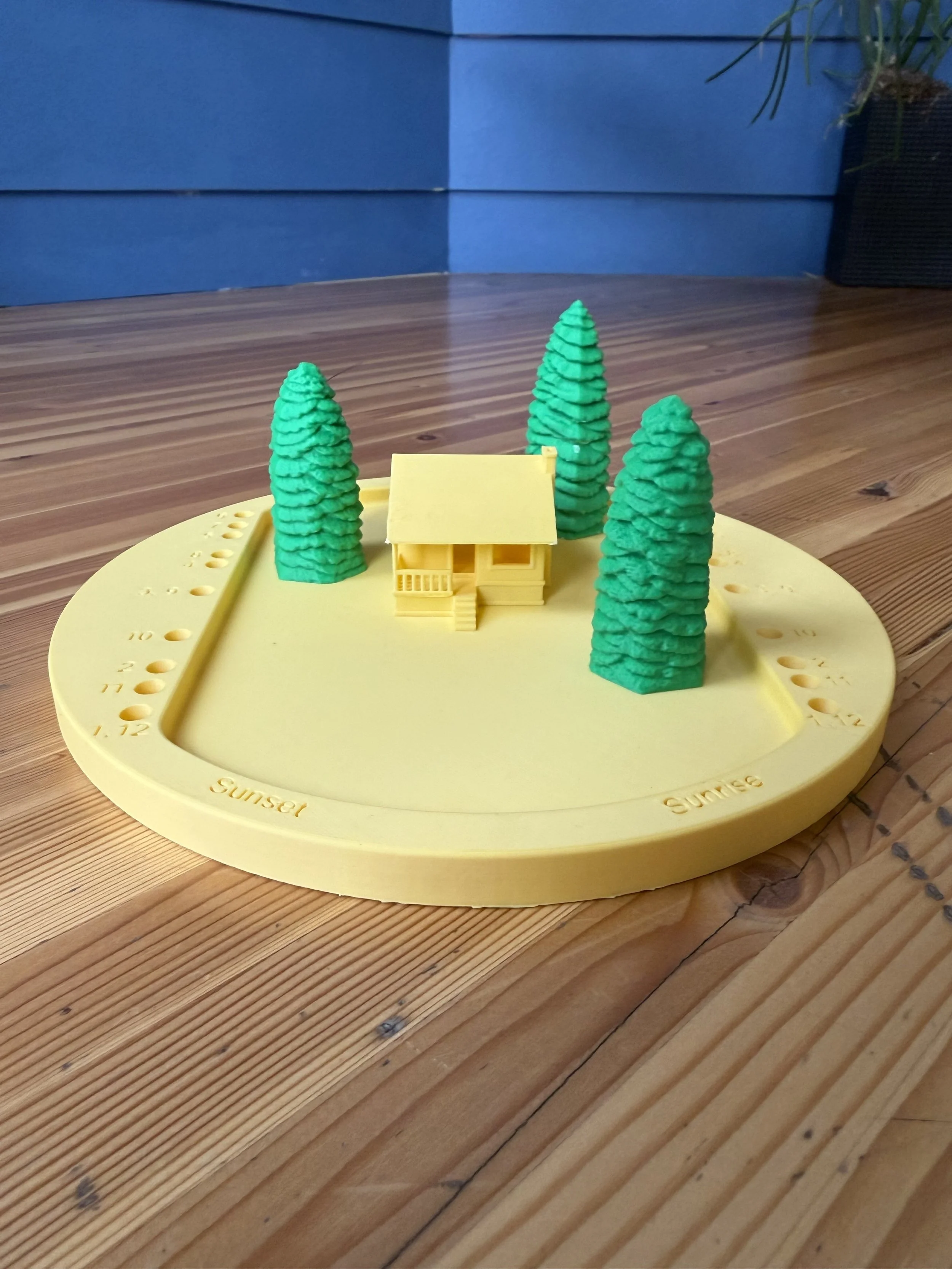 A tool for people who want to visually and physically simulate annual solar patterns at their home.
